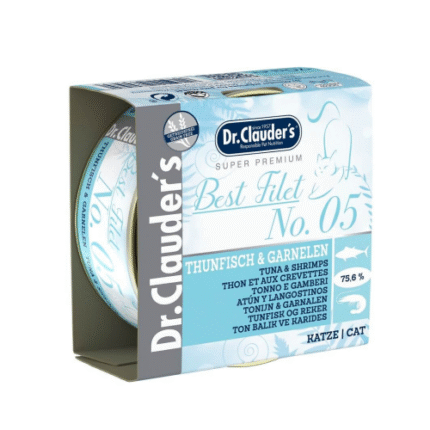 د.كلاودرز معلبات بست فيليه رقم 5 تونة وجمبري للقطط 70غ كرتون (24 حبة)
