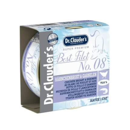 د.كلاودرز معلبات بست فيليه رقم 8 دجاج وجمبري للقطط 70غ كرتون (24 حبة)