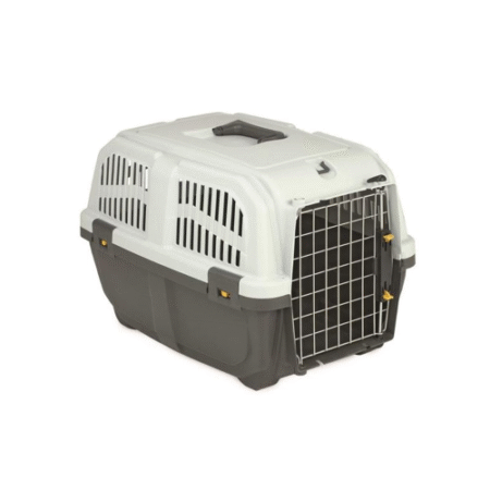 ام بي اس حامل قطط باب حديد مع صحن اكل ملون صغير