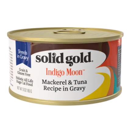 سوليد جولد إنديغو مون طعام رطب للقطط سمك الاسقمري وتونا بالمرق 85غ