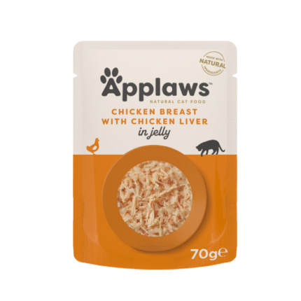أبلاوز أظرف طعام رطب للقطط – صدور الدجاج الطري مع الكبد في الجلي 70غ 16×70 جرام