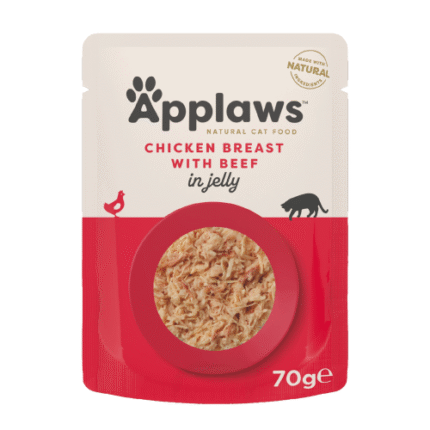 أبلاوز أظرف طعام رطب للقطط – صدور الدجاج الطري مع لحم البقر في الجلي 16×70 جرام