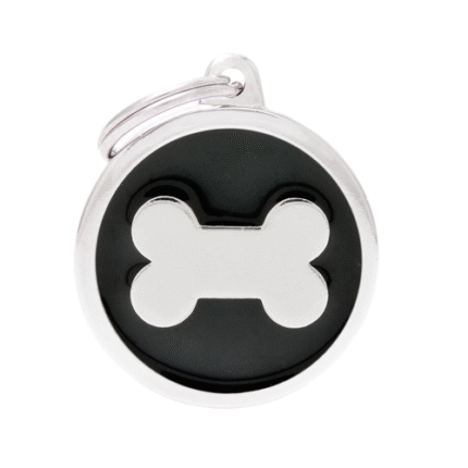 ماي فاميلي قلادة دائرة لامعة سوداء كبيرة عظام بيضاء