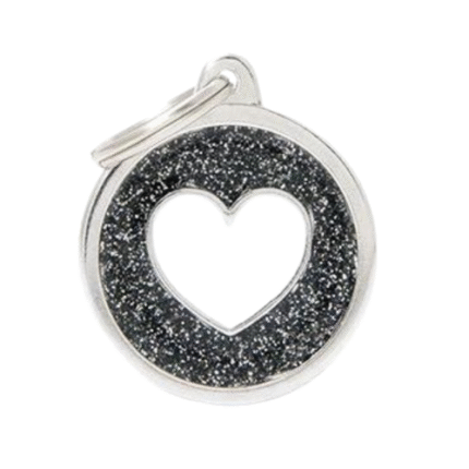 ماي فاميلي قلادة دائرة لامعة سوداء كبيرة قلب أبيض